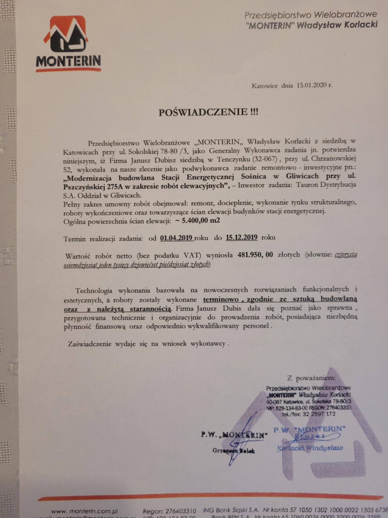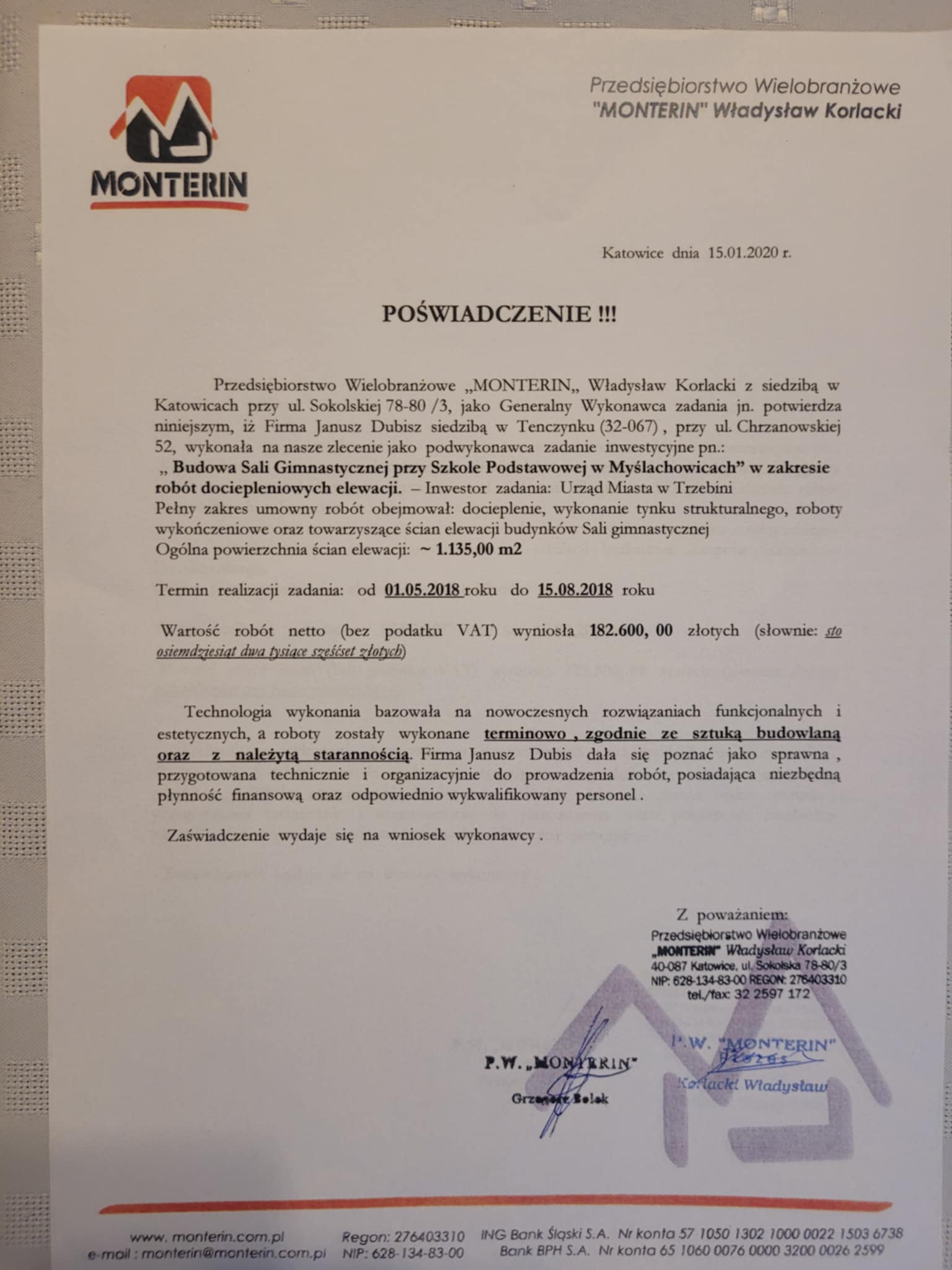 Firma istnieje na rynku od 15 lipca 1996 roku. Zajmujemy się kompleksowo dociepleniami i remontami budynków.