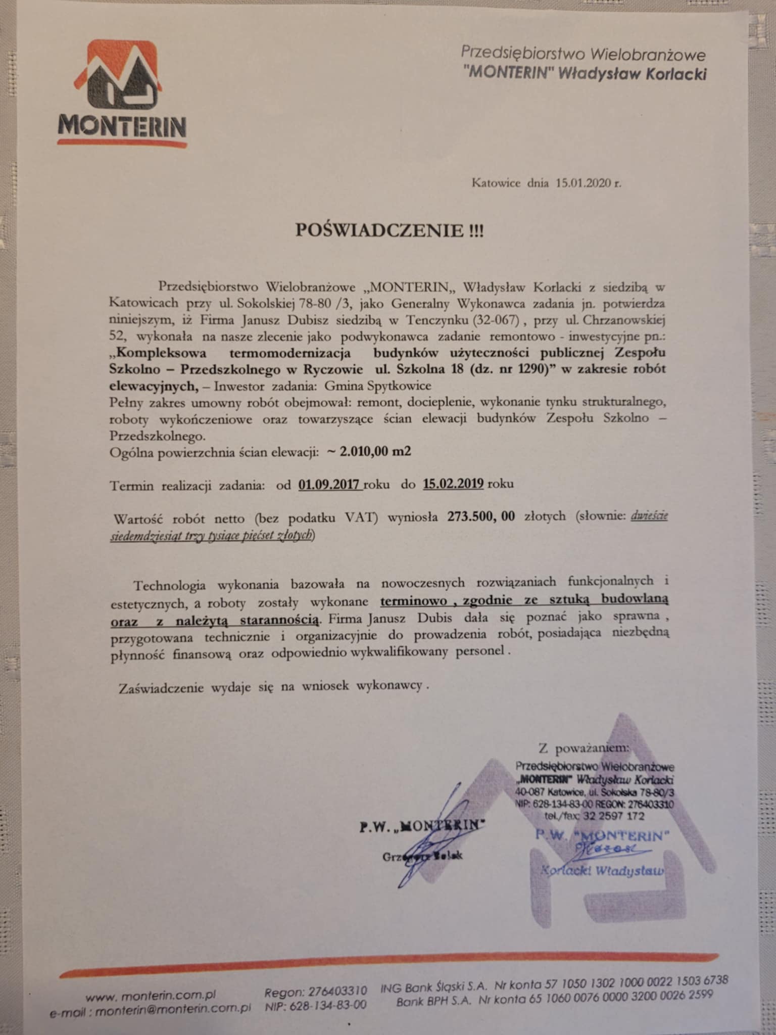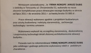 Firma istnieje na rynku od 15 lipca 1996 roku. Zajmujemy się kompleksowo dociepleniami i remontami budynków.